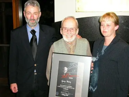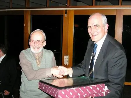 Mr George Harvey, former Head of Mathematics at St Clare’s College Canberra, received a BH Neumann Award from Trust Chairman Mr Greg Taylor AO at a function at the Boathouse Restaurant, Canberra on Saturday 21 May 2005.