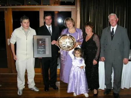 Dr Andrei Storozhev, Mathematician employed by the Trust, received a BH Neumann Award from Trust Chairman Mr Greg Taylor AO at a function at the Boathouse Restaurant, Canberra on Saturday 21 May 2005.