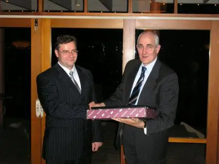 Mr Russell Coad, AMC State Director for WA, received a BH Neumann Award from Dr Peter Neumann, Fellow of the Queen’s College, Oxford, Lecturer at Oxford University, and Professor-at-large at the Institute of Advanced Studies, University of Western Australia, at a function at the Parmelia Hilton Hotel, Perth, on Friday 02 September 2005. Dr Neumann is a son of Professor BH Neumann, after whom the award is named.