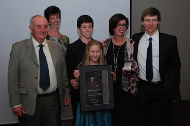 Graham with family at the presentation, from left daughter Christie, Miles Hindle (fiance of Sheyne), wife Maxine, daughter Sheyne, son Andrew and daughter in law Paula Acheson.