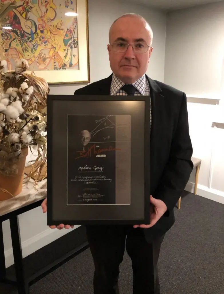 Andrew Gray has won this year’s B. H. Neumann Award and was presented with the honour by Dorothea Neumann at a small ceremony on Saturday 17 August.
