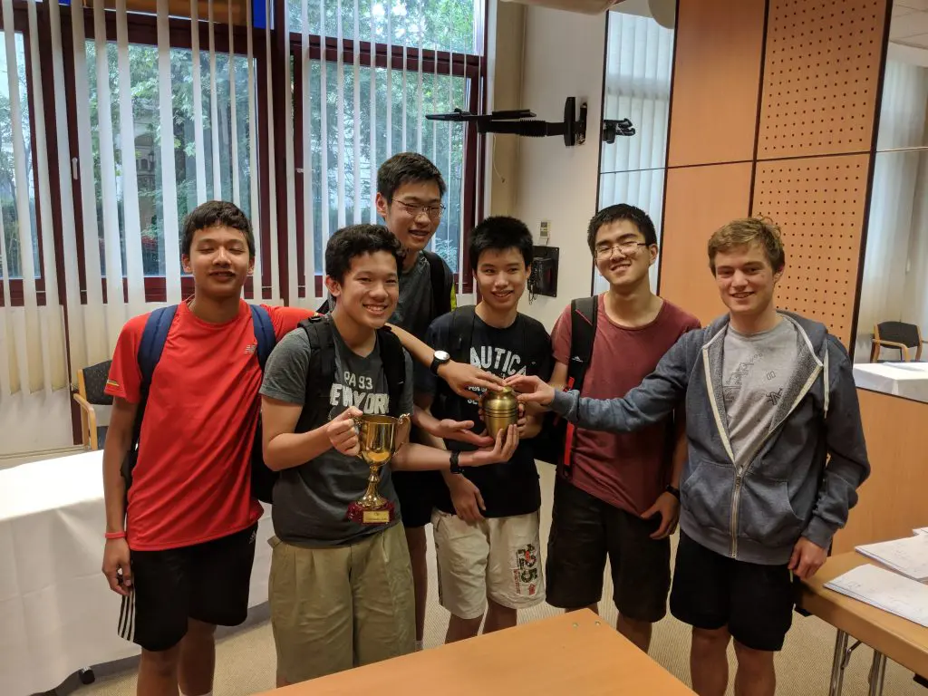 Up at 3.00am this morning for the flight to Cluj and the IMO proper after a week training with the British team. Yesterday, we had the Ashes competition and, after a ten-year drought, Australia finally regained the covered trophy, in a very tight competition, 99 points to 98. As you can see, the team is